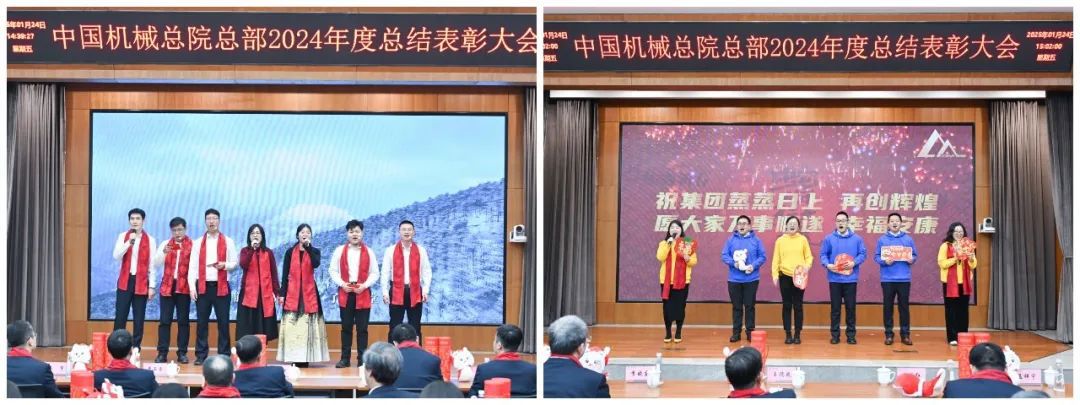 大會現場氣氛喜慶熱烈。《增信賦能 攜手同行》短片,回顧2024年豐碩成果、展望2025年發展前景。各部門以視頻方式送來新春祝福。大會向光榮在院30年、20年、10年的干部職工頒發紀念章;對涌現出的先進集體和優秀個人進行了表彰。集團領導為獲獎代表頒獎,獲獎代表感言分享成長喜悅、表達美好祝福。