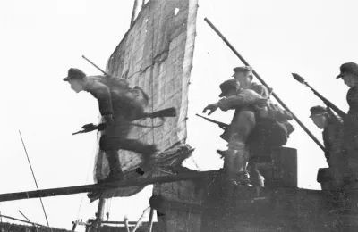 后繼部隊(duì)大批運(yùn)送彈藥的汽車過江